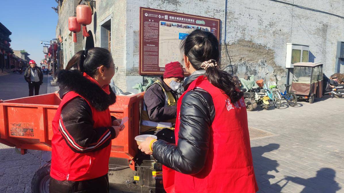 活动现场,志愿者们早早熬制好清香润肺的梨汤,细心分装,将一碗碗热气腾腾的梨汤,送给正在广场休闲晒太阳的老年人、埋头打扫的环卫工人、等候接单的外卖小哥、辛勤劳作的工地师傅、参观渠家大院的游客、奔波不停的公交与网约车司机、以及忙碌的快递工作者手中。他们皆是这座城市默默无闻的建设者与守护者。在寒意渐浓的冬日,这一碗甘甜的梨汤,不仅暖身,更暖心。它传递着城市的善意与关怀,让平凡忙碌的人们感受到来自社会的尊重与温度。此次活动,以实际行动诠释了“奉献、友爱、互助、进步”的志愿精神,让“汇聚志愿力量,共建美好社会”的愿景在细微处生根发芽,温暖了整座昭馀古城。